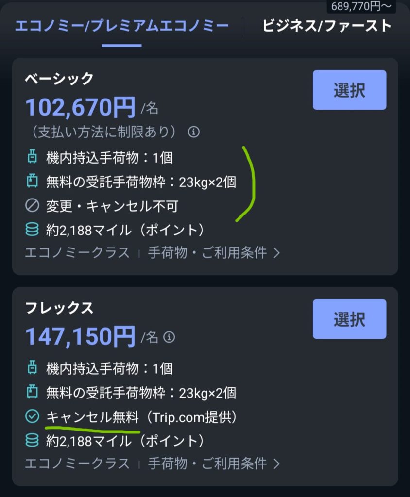 もし自分の旅程が変更やキャンセルになる可能性が高いなら変更やキャンセルが無料になるプランにすると安心かもしれない。