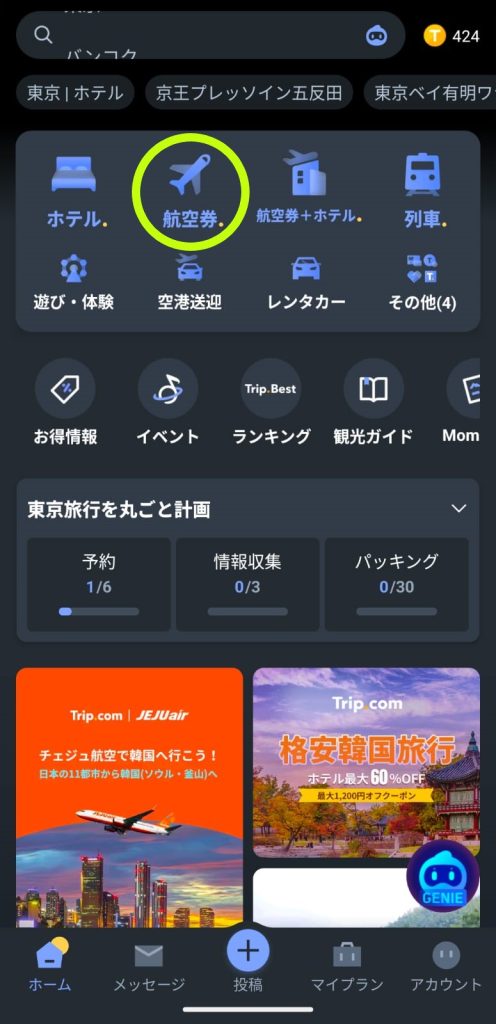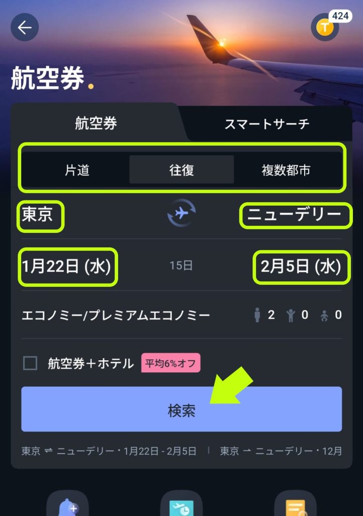 数万円の違いがあるならともかく、それほどの価格差ではないならシンプルに一つのアプリで管理するのもコスパの良い旅には大切だと感じた。以下ではよく使うであろう航空券を例に紹介しているので参考にしてみてほしい。